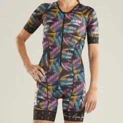 Trabajando arduamente para apoyarte en las tres etapas del triatlón hasta Ironman, el traje de carrera de manga corta Ali’i Tri Aero de Zoot para mujer está hecho de la tela italiana más fina, para que sepas que estás comprando durabilidad y calidad. En la carretera o en bicicleta, puedes aprovechar al máximo el diseño sublimado del traje que absorbe el sudor y te mantiene bien ventilado a medida que aumenta la presión (apoyando la cremallera de bloqueo de leva que puede agregar transpirabilidad adicional cuando lo necesites), y la tecnología SBR en la badana 2D absorbe los golpes y se seca rápidamente en todos los eventos. El soporte muscular también está en la mezcla, proporcionado por el agarre de la pierna para una compresión suave, evitando la fatiga por más tiempo.