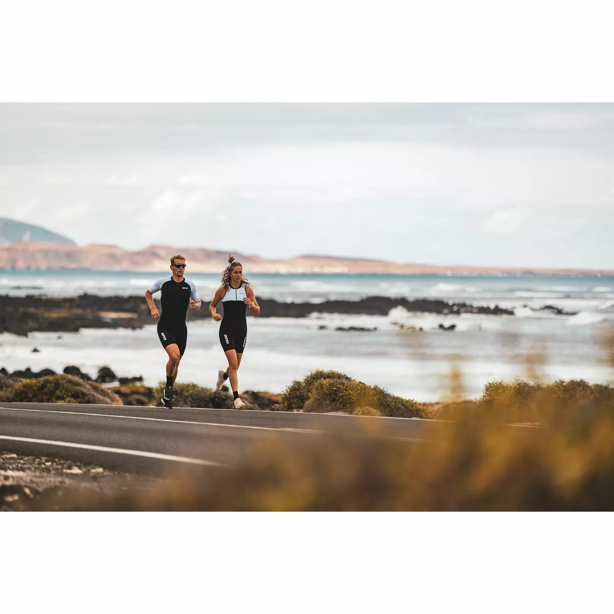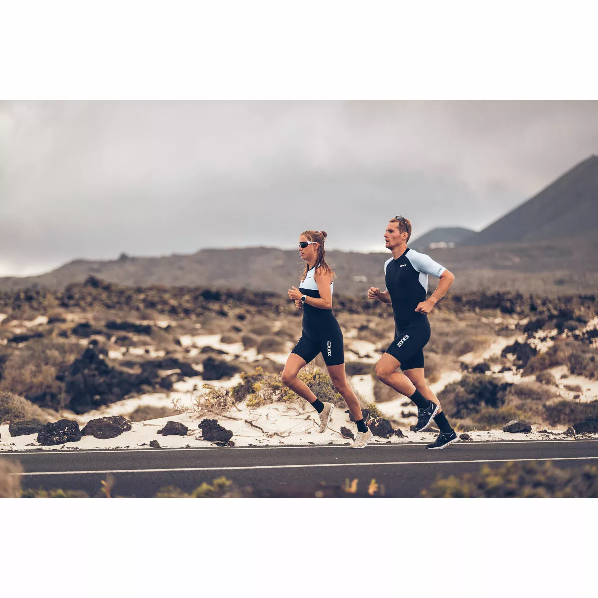 Integrado en la pierna del traje de triatlón, Sensory es un tejido extremadamente suave y liso que también agrega un elemento de compresión equilibrada. Esto mejora el soporte de las piernas ayudando a la resistencia y ayudando a mejorar la resistencia.