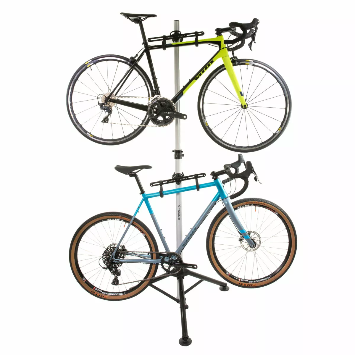 La base firme de este trípode para almacenar dos bicicletas se puede doblar cuando no esté en uso, lo que significa que no perderás un precioso espacio en el piso, en una habitación libre o garaje. El eje de aluminio es fuerte y liviano, lo que mantendrá tus bicicletas seguras cuando las coloques en los soportes de almacenamiento.
