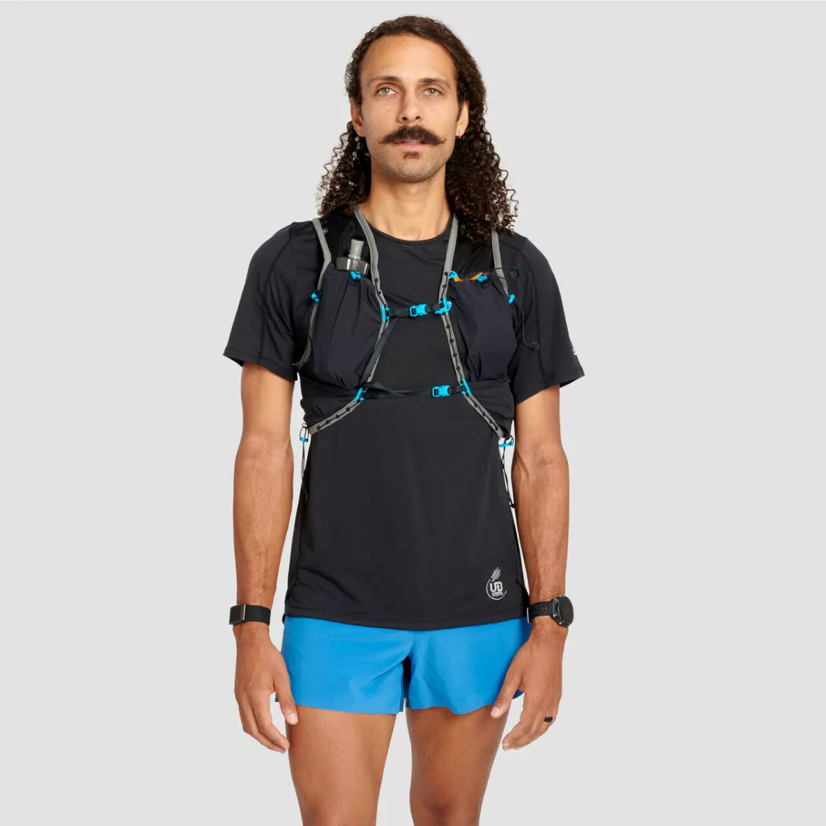 Great whether you’re training or racing, whether you’re hitting the trail or hitting the road, the Ultimate Direction Race Vest 6.0 is the ultimate running vest. Engineered with Ultimate Direction’s advanced, fully-customisable vest-fit technology, with the ultra-durable Comfort Cinch™ 3.0, and integrated with protective mesh panels, the vest ensures the stability, breathability, and comfort you need for your longest running adventures and events. Designed with a roomier cut in the back, and spacious arms holes, the vest provides a taller fit, great for larger frames.