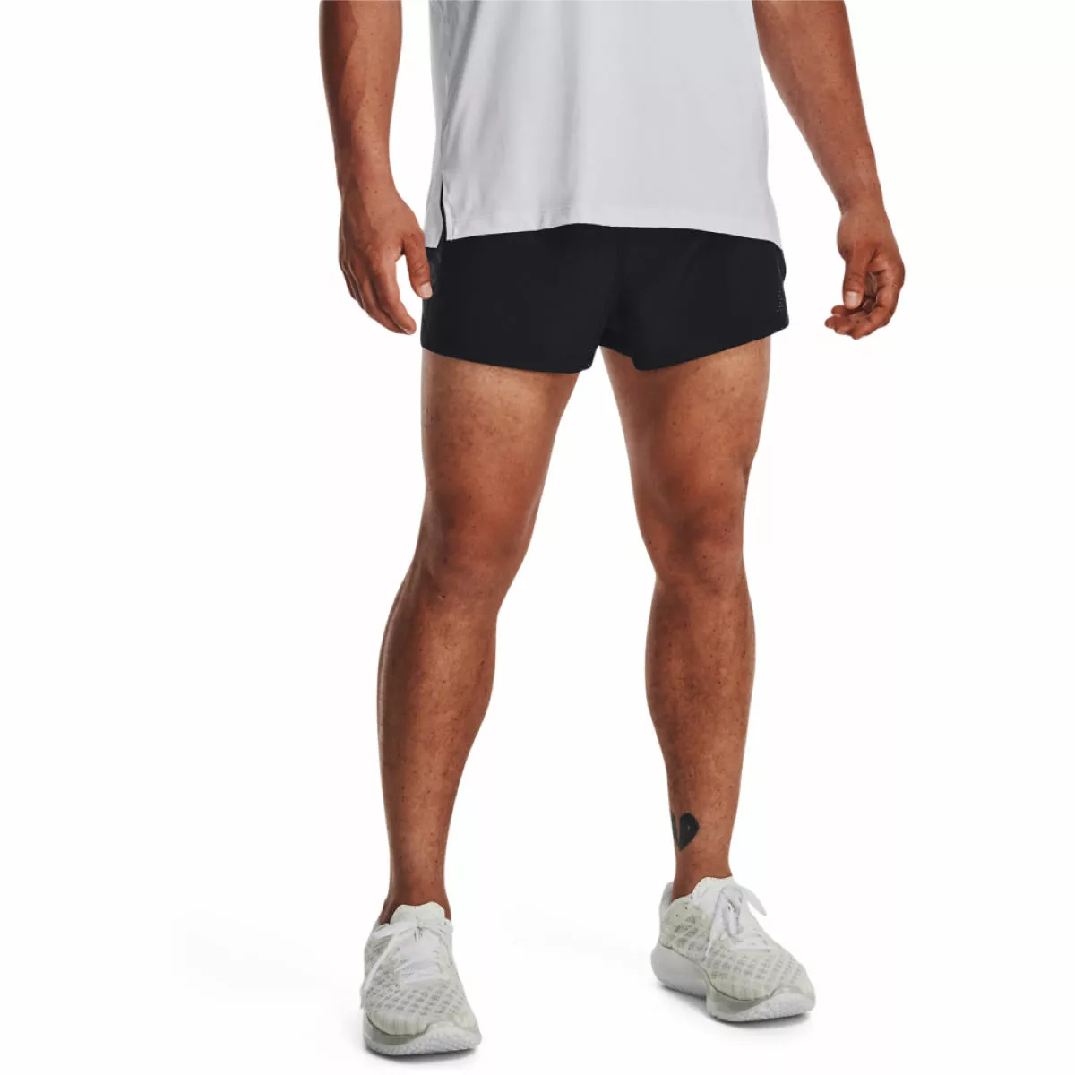 Maximise your stride in the Under Armour Launch Split Performance Shorts. Cut in a streamlined fit with a side split hem for unrestricted movement. Crafted from light perforated woven fabric to keep the air flowing while an internal mesh liner adds coverage and support. Finished with a soft knit waistband with an internal drawcord and drop-back pocket.