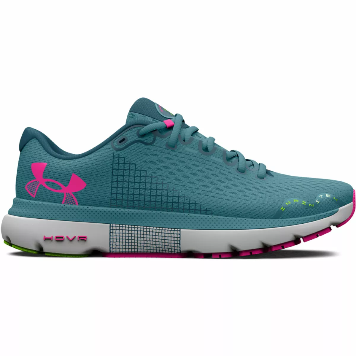 Updated with a simplified engineered mesh upper, the Under Armour Women’s HOVR Infinite 4 Running Shoes are extremely lightweight and breathable and offer strategic support and structure where you need it. Alongside the premium fit and secure traditional lacing system, a 3D-moulded sockliner cradles your foot for step-in comfort. The midsole features UA HOVR™ cushioning to reduce impact shock and return forward-propelling energy to offer a smooth and responsive ride, while anatomically placed deep flex grooves allow your feet to transition naturally. Finally, carbon rubber pods under the heel deliver traction and durability in high-impact zones for long-lasting wear.