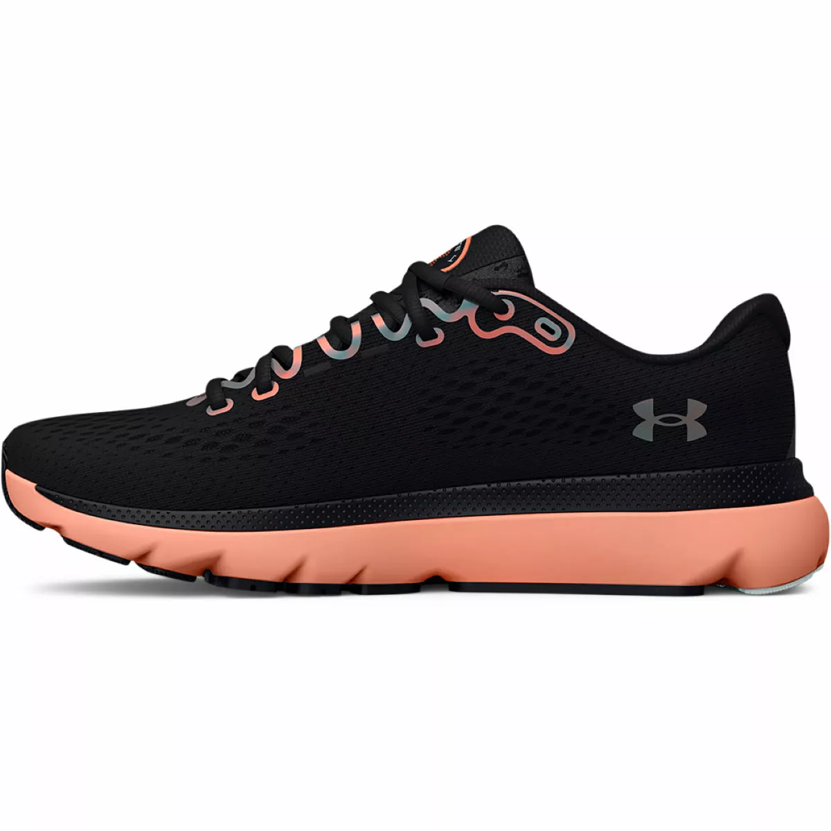 Updated with a simplified engineered mesh upper, the Under Armour Women’s HOVR Infinite 4 Running Shoes are extremely lightweight and breathable and offer strategic support and structure where you need it. Alongside the premium fit and secure traditional lacing system, a 3D-moulded sockliner cradles your foot for step-in comfort. The midsole features UA HOVR™ cushioning to reduce impact shock and return forward-propelling energy to offer a smooth and responsive ride, while anatomically placed deep flex grooves allow your feet to transition naturally. Finally, carbon rubber pods under the heel deliver traction and durability in high-impact zones for long-lasting wear.