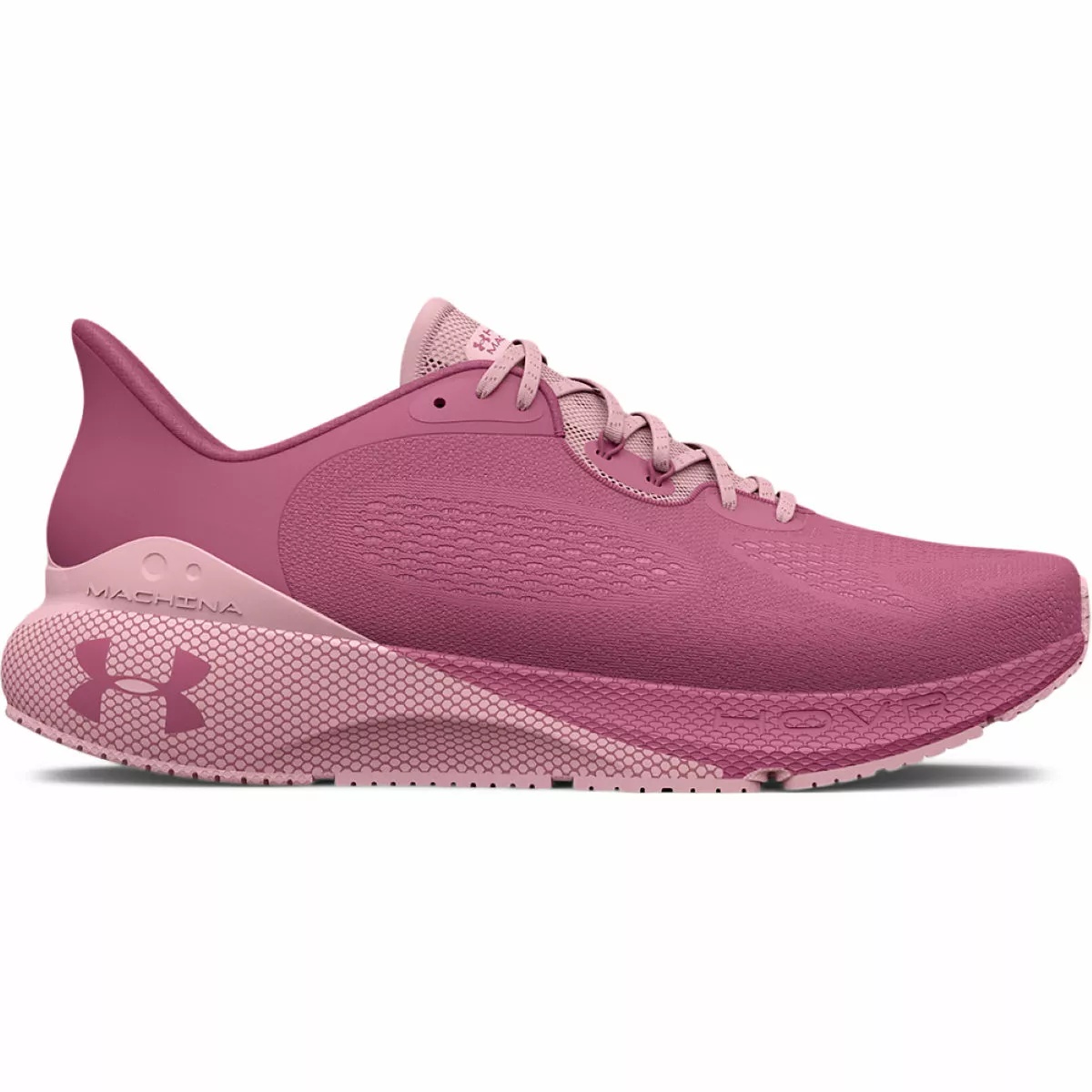 Crafted with an engineered warp spacer upper, the Under Armour Women’s Machina 3 Running Shoes are incredibly lightweight with excellent ventilation that keeps you cool and allows your feet to breathe on long runs. The upper features a strategically-mapped design removing any seams or overlays so you can run without distraction, while an aerodynamic heel design, external TPU heel wrap and moulded EVA sockliner ensure a supportive lockdown fit for high-mileage performance. At the midsole, UA HOVR™ delivers responsive cushioning that quickly absorbs impact shock and transfers the energy into an explosive, forward-propelling take off. Finished with a channelled rubber outsole that has been mapped for durability in high-wear areas while promoting flexibility and natural movement.