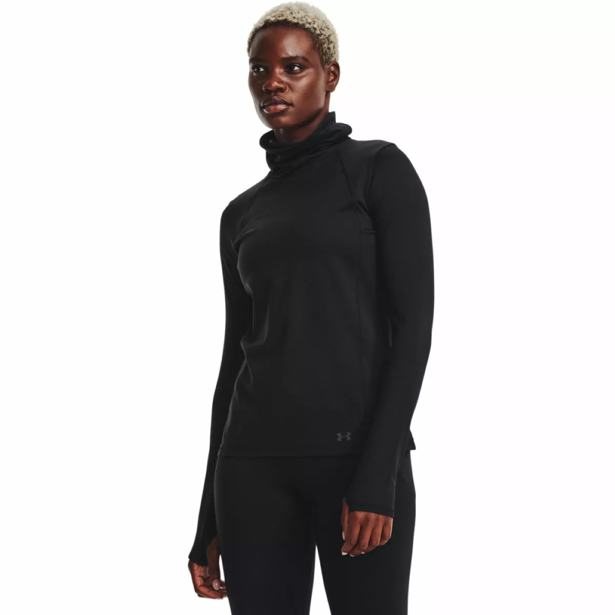 Cut in a fitted streamlined fit and crafted from super soft and stretchy ColdGear® terry fabric, the Under Armour Women’s Meridian Cold Weather Funnel Neck Top offers all-day warmth, coverage and comfort. The 4-way stretch fabric allows you to move in all directions without restriction and the material quickly wicks moisture so you remain dry and focused on your training. Designed with a slouchy funnel neck for added coverage and built-in thumbholes to hold everything in place while trapping and retaining heat.