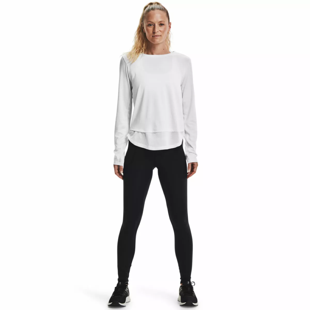 Complete your workout in complete comfort with the Under Armour Women’s Motion Leggings. Crafted from double-knit fabric that feels soft against your skin and allows airflow for enhanced breathability. Delivering a premium fit that’s streamlined but not restrictive thanks to the 4-way stretch construction so you can move and stretch with ease. The wide flat waistband gives a secure flattering fit and a side drop-in pocket provides convenient storage.
