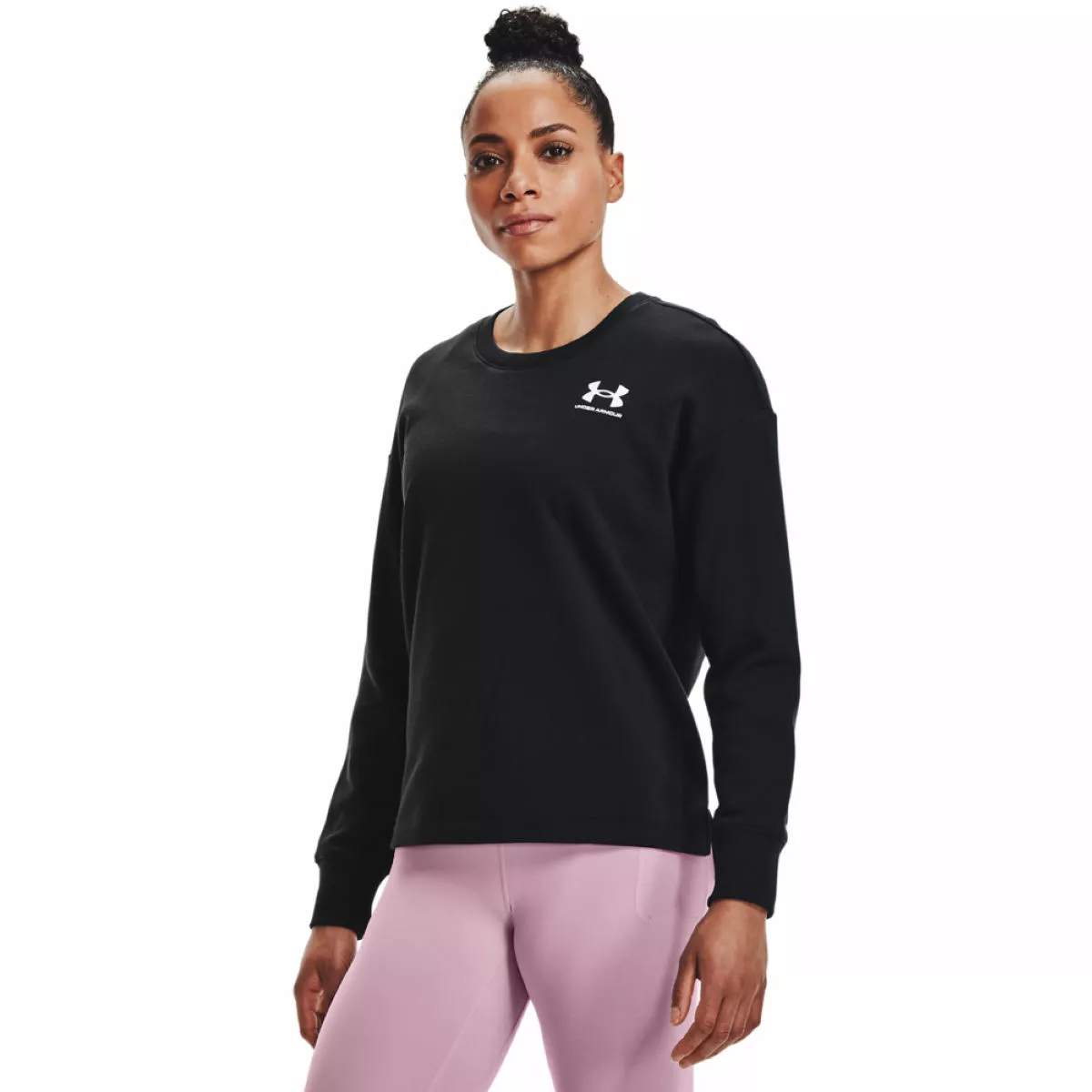 The Under Armour Women’s Rival Fleece Oversize Crew Top keeps you warmed up and ready for pretty much everything you do. Made with lightweight and comfortable cotton blend fleece fabric with a brushed interior that not only feels great against your skin but also keeps you warm in colder conditions.