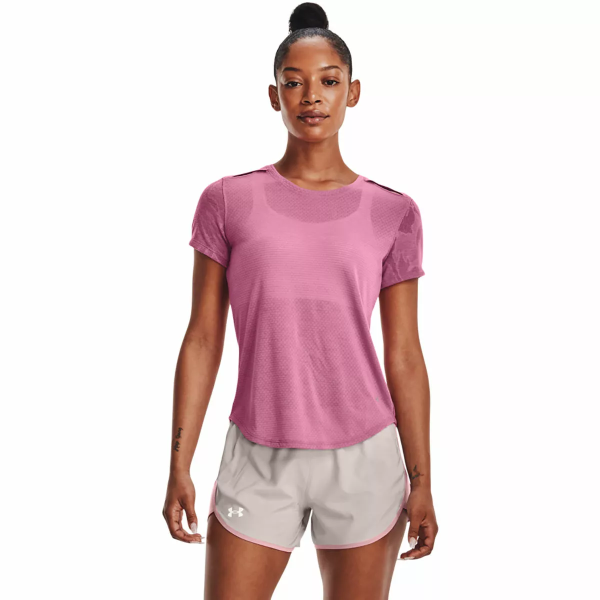 Constructed with Microthread technology, the Under Armour Streaker SnowCloud Short Sleeve Run Top wicks moisture and dries incredibly quickly so it won’t cling or stretch and you stay distraction-free and focused. Mesh panels add breathability allowing air to circulate close to your skin and disperse heat so you remain cool and your temperature regulated. A dropped hem provides good coverage and reflective details work to keep you visible when running in low light.