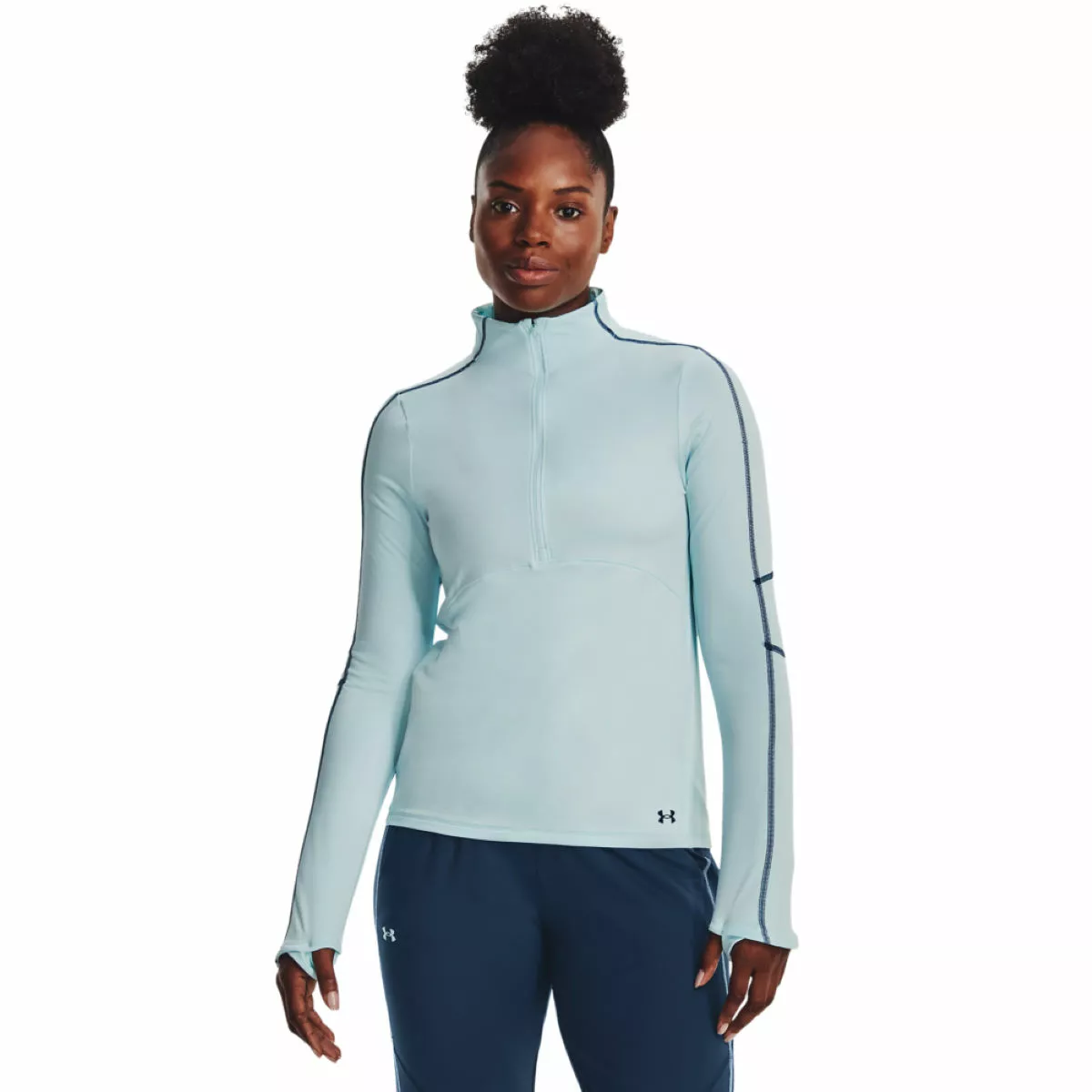 Cut in a streamlined fit from dual-layer fabric, the Under Armour Women’s Train Cold Weather Half Zip Running Top feels great against the skin with an ultra-warm brush interior and a smooth, fast-drying exterior. The 4-way stretch fabric allows you to move in all directions without feeling restricted and a generous 1/2 zip provides added ventilation and makes it easy to layer up. Finished with built-in thumbholes to keep the sleeves locked in place.