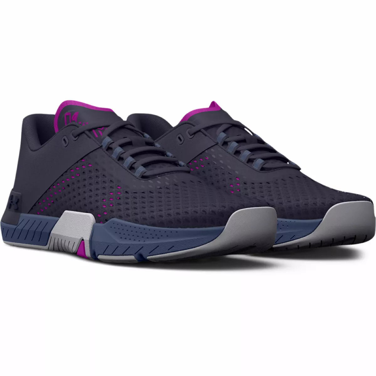 Featuring an engineered mesh upper with strategic haptic overlays, the Under Armour Women’s TriBase Reign 4 Gym Shoes deliver zonal protection and durability. The external midfoot cage and heel counter alongside a knit bootie collar give a secure distraction-free fit with enhanced stability. Full-length Micro G® foam ensures responsive midsole cushioning and UA TriBase™ maximises ground contact, promotes natural motion and provides flexibility to grip during lifts. The low-to-the-ground build allows for a greater feel and power transfer while the full-rubber outsole wraps up the sides for durability and abrasion resistance with added medial rope grip. Finally, strategic rubber under the toe box gives a more powerful floor grip so you remain sure-footed during lifts.