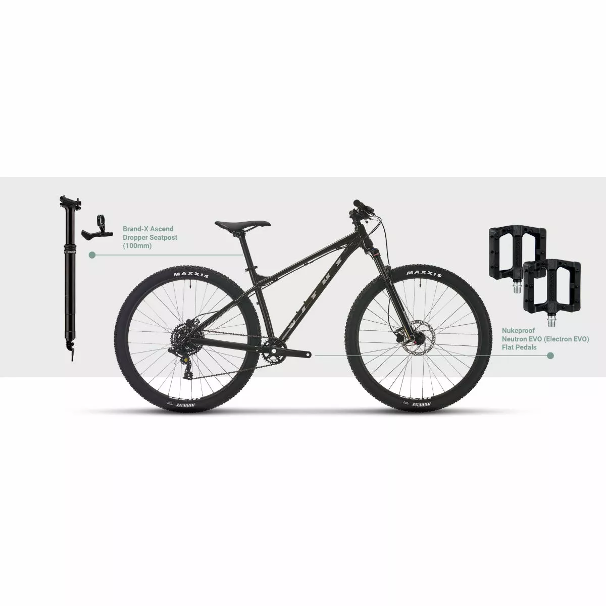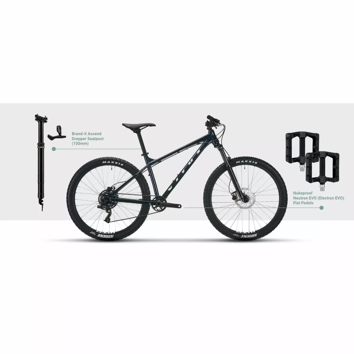 The components include Clarks M2 hydraulic disc brakes that are responsive no matter the conditions, a terrain-smoothing SR Suntour XCR32 Air LOR DS 120mm Travel air-sprung suspension fork and the no-fuss Box Four drivetrain that ensures the gear shifting is fast and light. With an award-winning aluminium frame at its core, this bundle raises the stakes adding a Brand-X Ascend Dropper Seat Post (fully fitted) for on-the-fly saddle height adjustments, helping you always find the right position on the bike and grippy Nukeproof Neutron EVO Pedals that’ll keep your feet firmly planted in place. Key upgrades that’ll help grow your confidence on the bike and keep your mountain biking skills rolling forward.