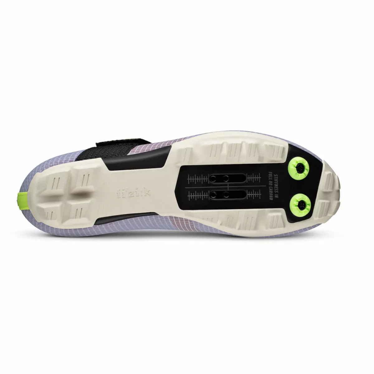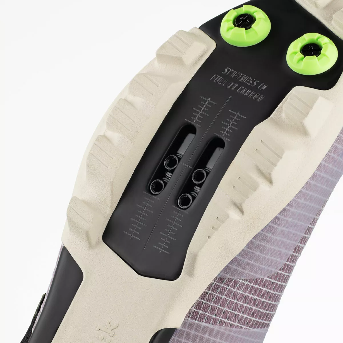 Cuando estás fuera de la bicicleta, la tracción todoterreno se realiza a través de la banda de rodadura de goma en el talón y en el exterior del área de la cala. Y para carreras especialmente embarradas, puedes añadir tacos en la puntera para aumentar el agarre, perfecto para las carreras empinadas y embarradas de ciclocross en invierno.